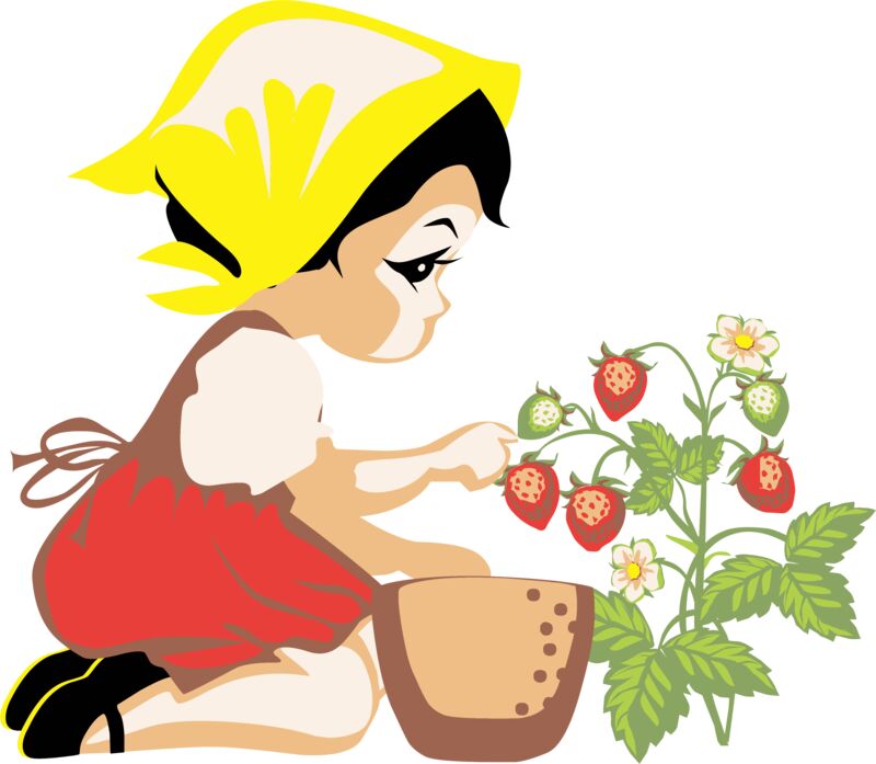 Girl picking strawberries
